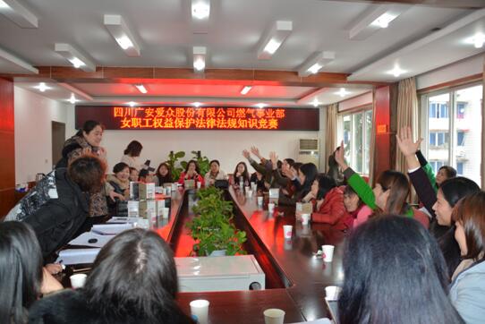 為促進(jìn)女職工權(quán)益法律法規(guī)的貫徹學(xué)習(xí),增強(qiáng)女職工學(xué)法、知法、用法和依法維護(hù)自身合法權(quán)益的意識和能力,3月8日,燃?xì)馐聵I(yè)部舉辦了女職工權(quán)益保護(hù)法律法規(guī)知識培訓(xùn),并在培訓(xùn)學(xué)習(xí)后,開展了迎“三八”女職工權(quán)益保護(hù)法律法規(guī)知識競賽。